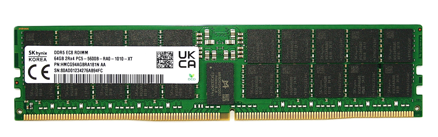 - Set of 64GB memory consisting of 1x 64GB ECC REGISTERED DDR5 2Rx4 5600MHz PC5-44800 RDIMM | HMCG94AGBRA181N