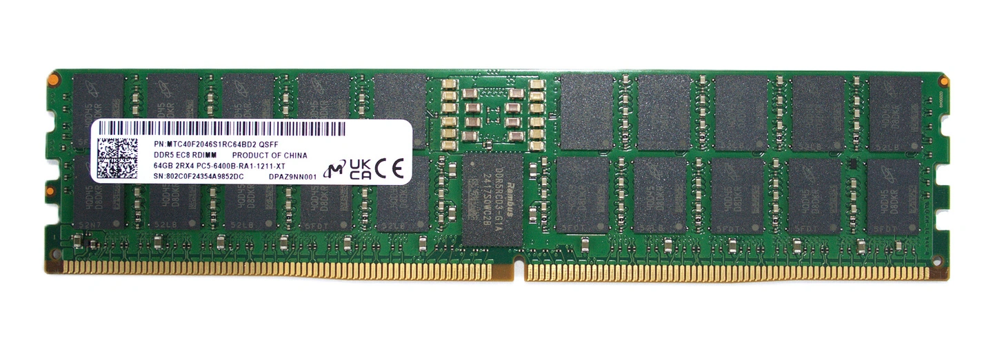 - Set of 64GB memory consisting of 1x 64GB ECC REGISTERED DDR5 2Rx4 6400MHz PC5-51200 RDIMM | MTC40F2046S1RC64BD2