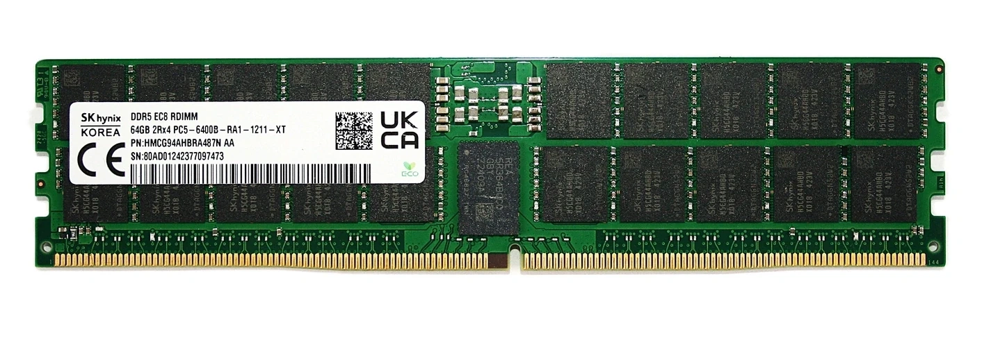 - Set of 64GB memory consisting of 1x 64GB ECC REGISTERED DDR5 2Rx4 6400MHz PC5-51200 RDIMM | HMCG94AHBRA487N
