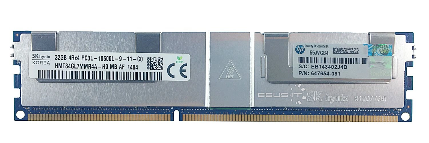 - Set of 32GB memory consisting of 1x 32GB PC3-10600 DDR3 1333MHz 1.35 V / 1.5V ECC LOAD REDUCED DIMM | HMT84GL7MMR4A-H9