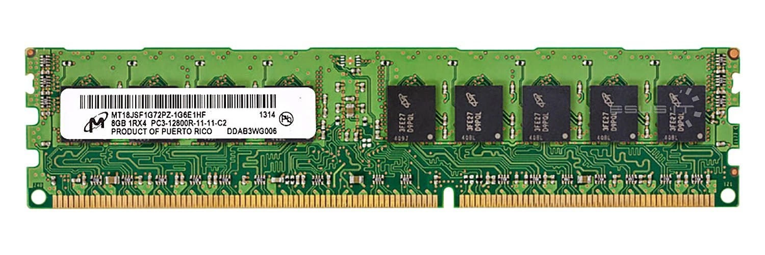 - Set of 8GB memory consisting of 1x 8GB PC3-12800 DDR3 1600MHz 1.5 V ECC REGISTERED | MT18JSF1G72PZ-1G6