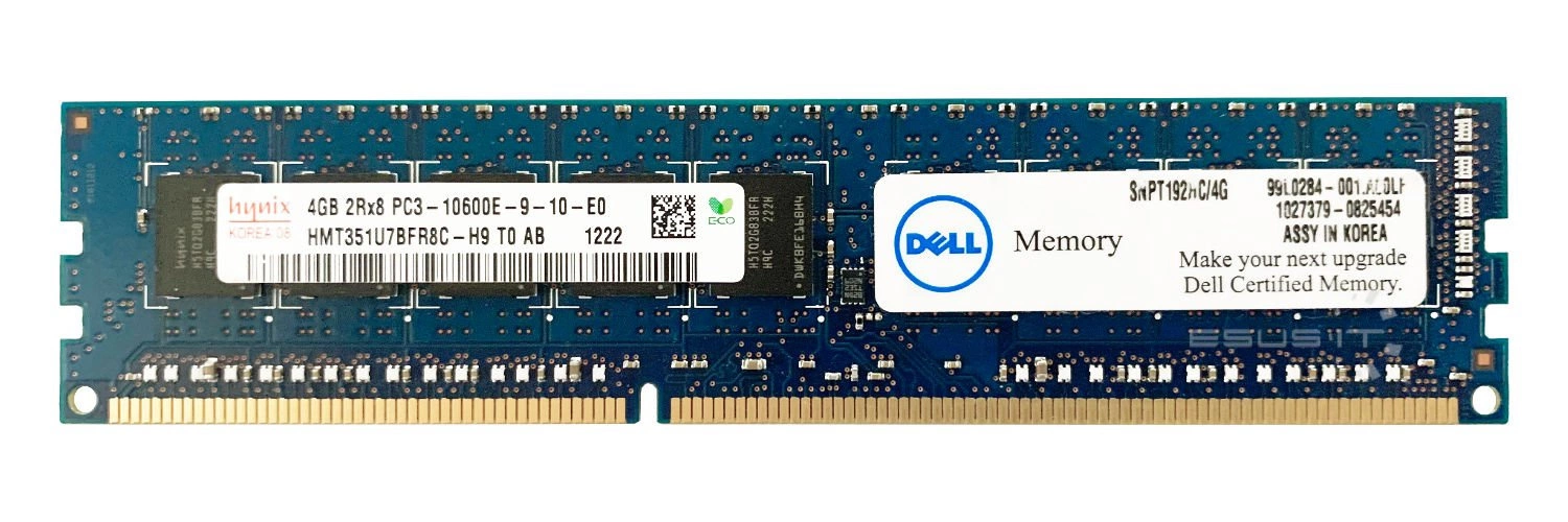 - Set of 4GB memory consisting of 1x 4GB 2Rx8 PC3-10600 DDR3 1333MHz 1.5 V ECC UNBUFFERED | HMT351U7BFR8C-H9