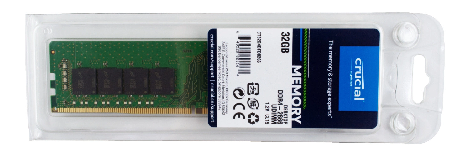 • Set of 32 GB memory consisting of 1x 32GB PC4-21300 DDR4 2666MHZ NON-ECC UNBUFFERED DIMM | CT32G4DFD8266