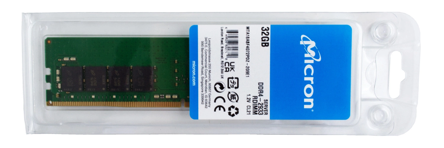 • Set of 32GB Micron consisting of 1x 32GB 2Rx8 PC4-23400 DDR4 2933MHz ECC REGISTERED | MTA18ASF4G72PDZ-2G9