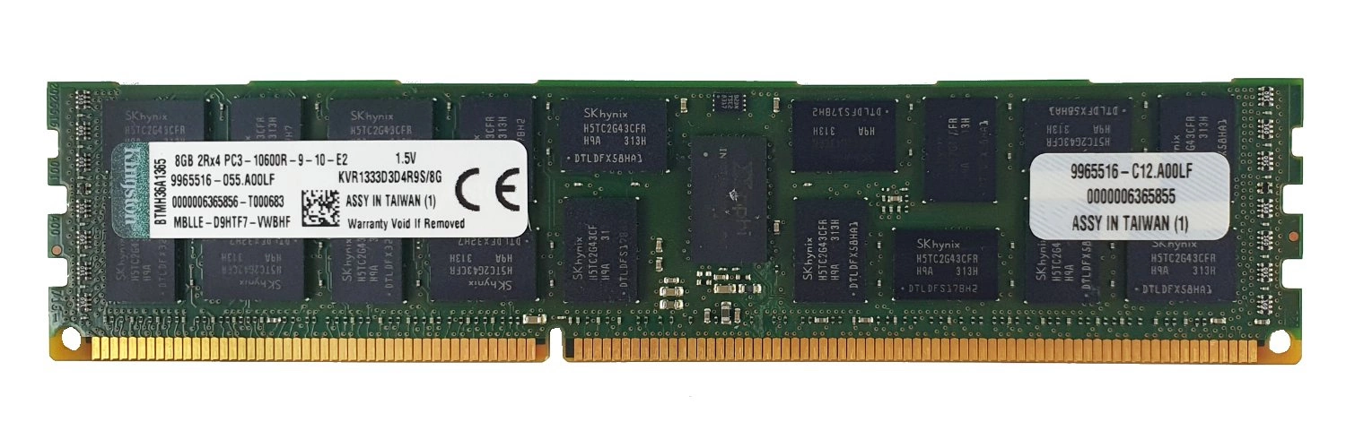 • Set of 8GB memory consisting of 1x 8GB PC3-10600 DDR3 1333MHz 1.5V ECC REGISTERED | KVR1333D3D4R9S/8G