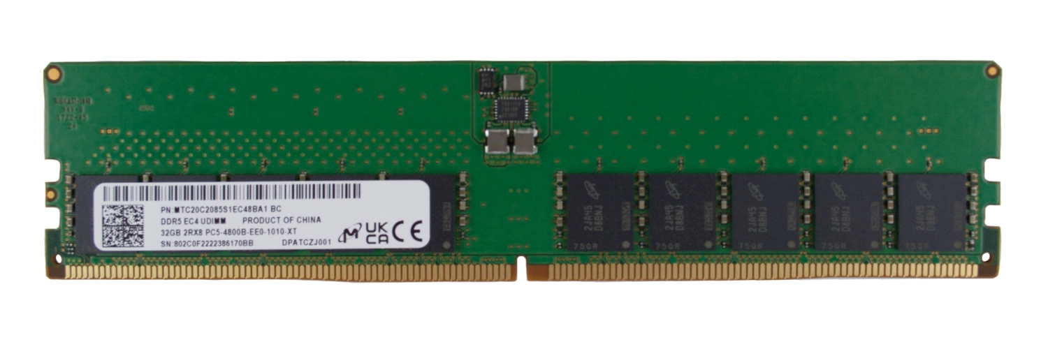 - Set of 32GB memory consisting of 1x 32 GB 2Rx8 PC5-38400 DDR5 4800MHz 1.1 V ECC UNBUFFERED | MTC20C2085S1EC48BA1R