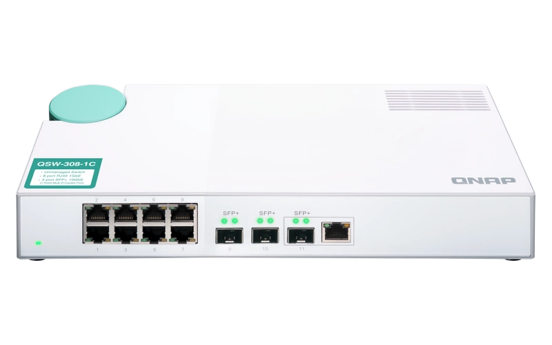 - Switch QNAP QSW-308-1C 8x RJ-45 10/100/1000 Mbps 1x RJ-45/SFP+ 2x SFP+