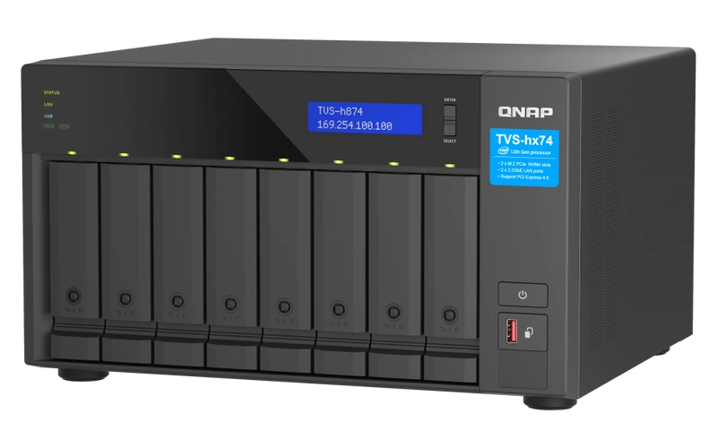 - NAS server QNAP TVS-h874 | CPU: Intel Core i7 RAM: 32GB | 2x 2.5GB RJ-45, 3x USB 3.2 Gen 2 | Warranty 3 year