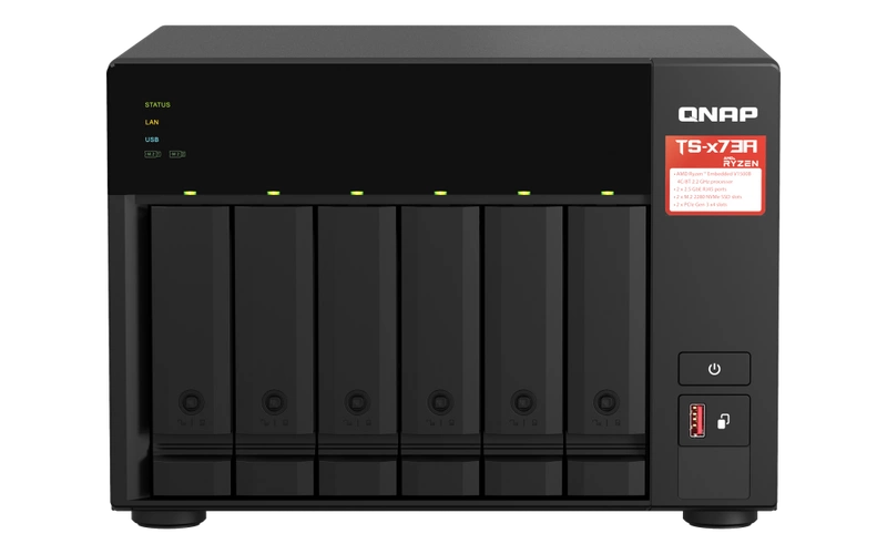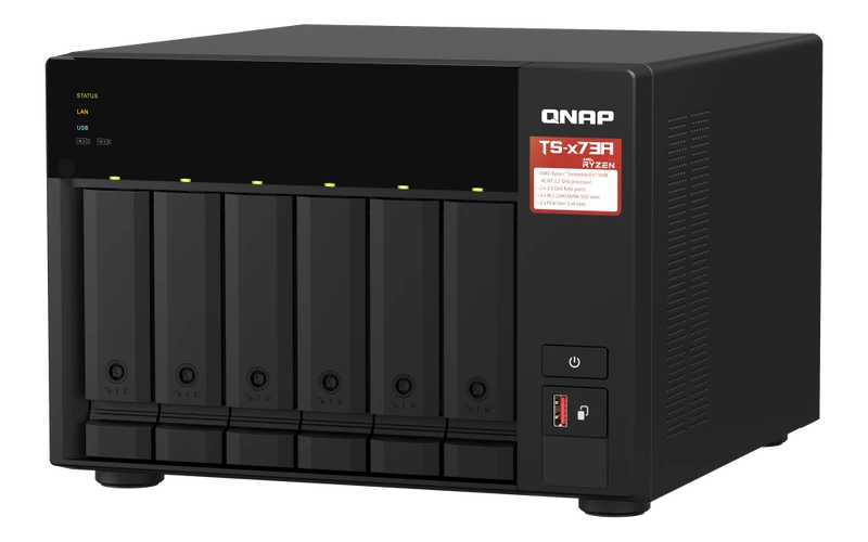 • NAS server QNAP TS-673A | CPU: AMD Ryzen V1500B RAM: 8GB | 2x 2.5GB RJ-45, 4x USB 3.2 Gen 2 | Warranty 3 year