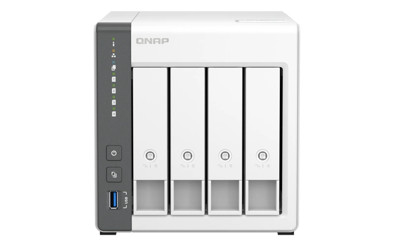 - NAS server QNAP TS-433 | CPU: ARM Cortex-A55 RAM: 4GB | 1x 1GB RJ-45 1x 2.5GB RJ-45, 1x USB 3.2 Gen 1 | Warranty 2 year