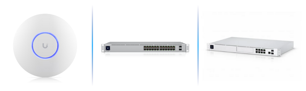 1. UniFi Dream Machine Pro (UDM-Pro) Our powerful network console, the UDM-Pro, is the heart of your new network. It combines advanced management features, high-level security, and unparalleled performance. Equipped with an octa-core processor and Dual-WAN technology, it ensures uninterrupted connection and optimal network traffic management. With integration into the UniFi Network system, the UDM-Pro offers comprehensive network management, threat protection, VPN access control, and much more.
