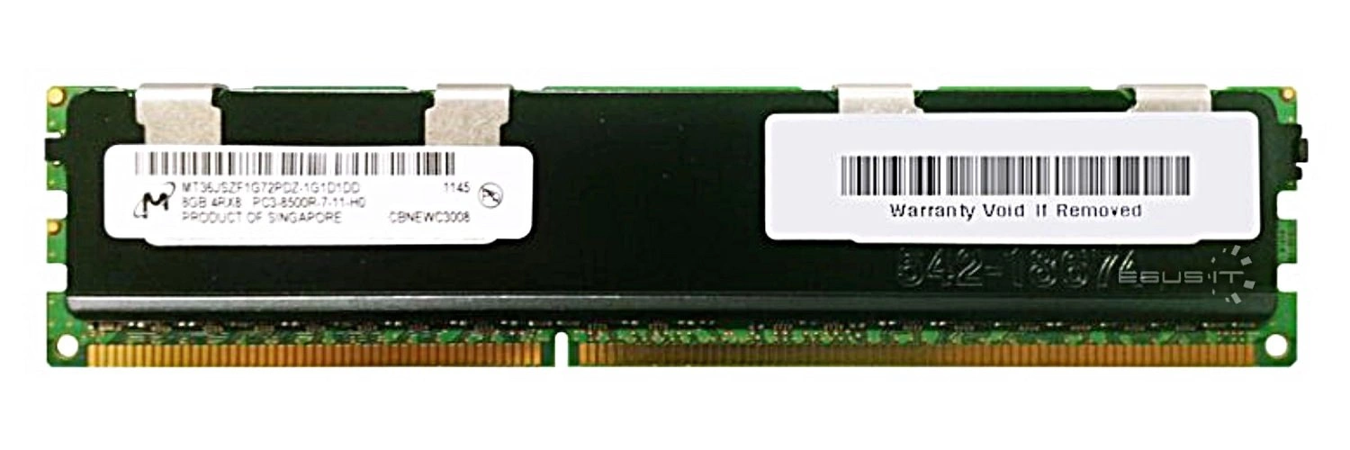 - Set of 8GB memory consisting of 1x 8GB PC3-8500 DDR3 1066MHz 1.5 V ECC REGISTERED | MT36JSZF1G72PDZ-1G1