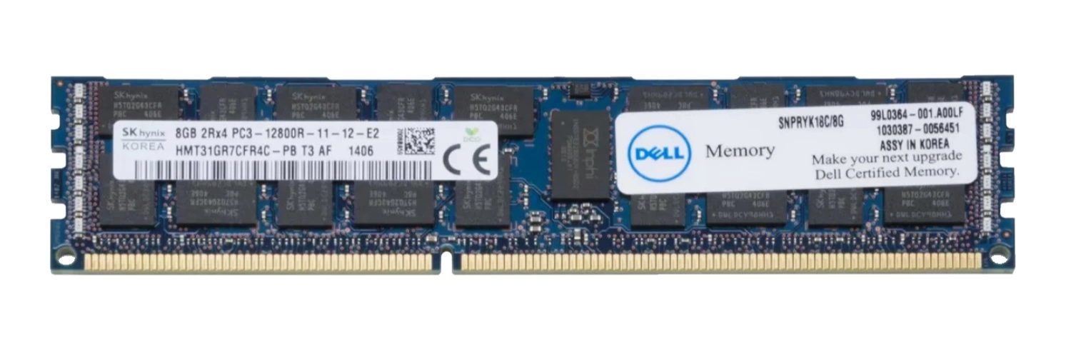 - 8GB memory upgrade kit dedicated for DELL PowerEdge & Precision Workstation consisting of 1x 8GB PC3-12800 DDR3 1600MHz ECC REGISTERED DIMM | SNPRYK18C/8G. ESUS IT gives you a guarantee that the offered product is original.